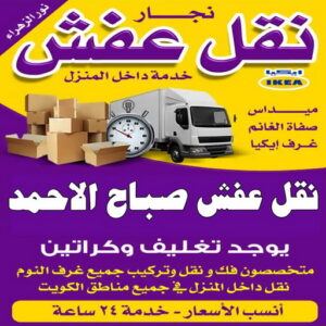 نقل عفش صباح الاحمد المختص بتركيب جميع غرف النوم م لإيكيا و الأثاث ايكيا أيضا، فح و تركيب جميع الأثاث، الخزن، السرر و غيرها أيضا، نعمل أيضا على توفير كافة قطع الغيار الأصلية، نقوم بالعمل على تلبية جميع رغبات العملاء توفير كافة السيارات اللازم لنقل الأثاث و غيرها أيضا.