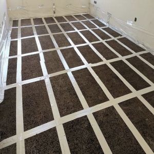 الأرضية هامة جدا لأن نسبة ارتداد الصوت منها كبيرة ، والأفضل هو مدها بالموكيت السميك على أن تكون خلفيته ليست من النايلون بل من الخيش أو السجاد السميك