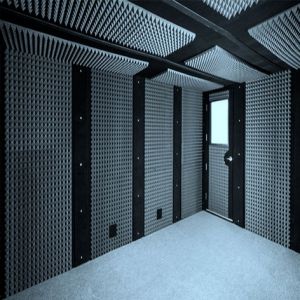 يمكن ترتيب سقف مستعار فيه قطع من الألياف الزجاجية أو الصوف الزجاجي وهو الأعلى في امتصاص الصوت بين جميع المواد
